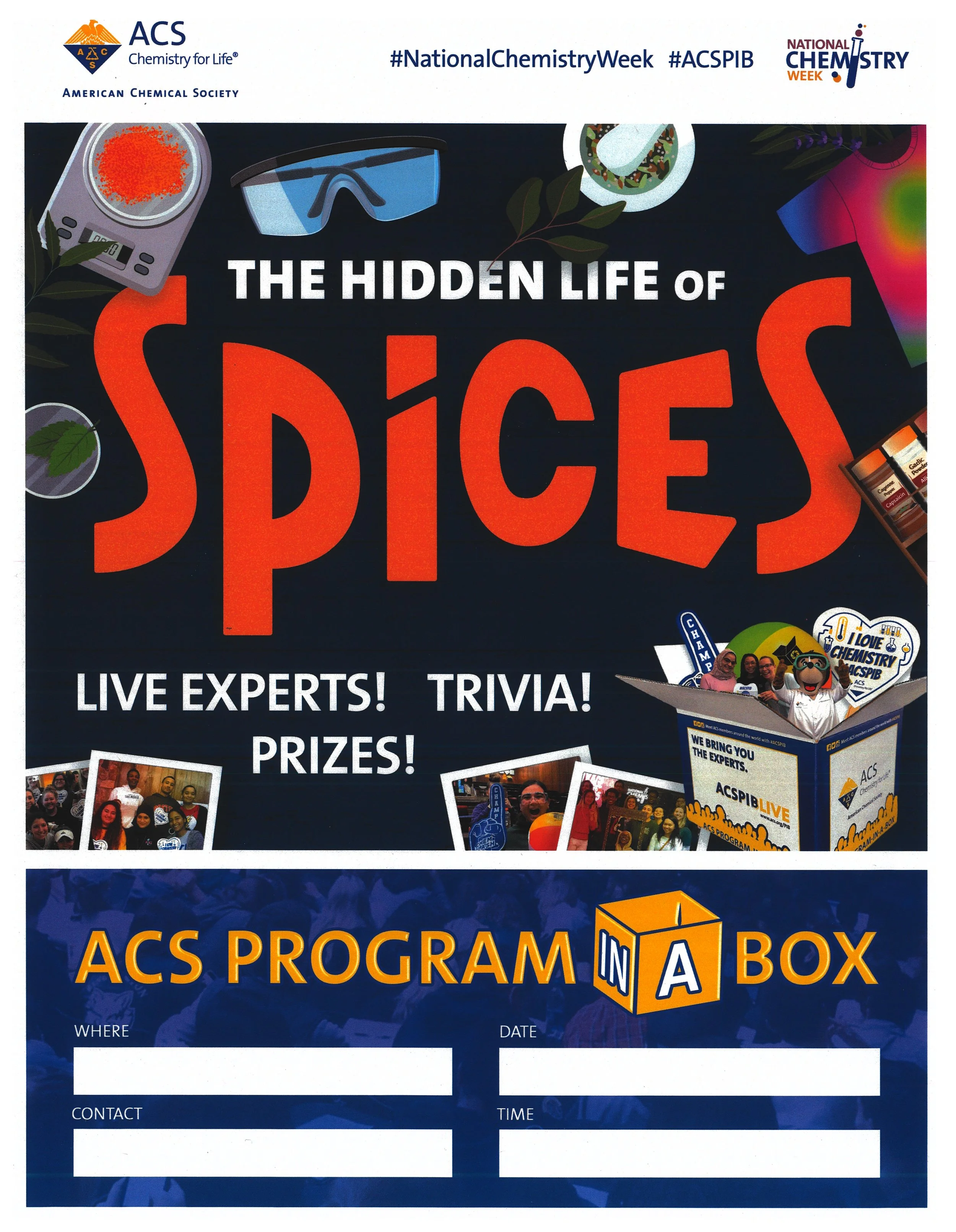 Join us to learn more about outreach, participate in some hands-on kitchen chemistry demonstrations, and have some free pizza!