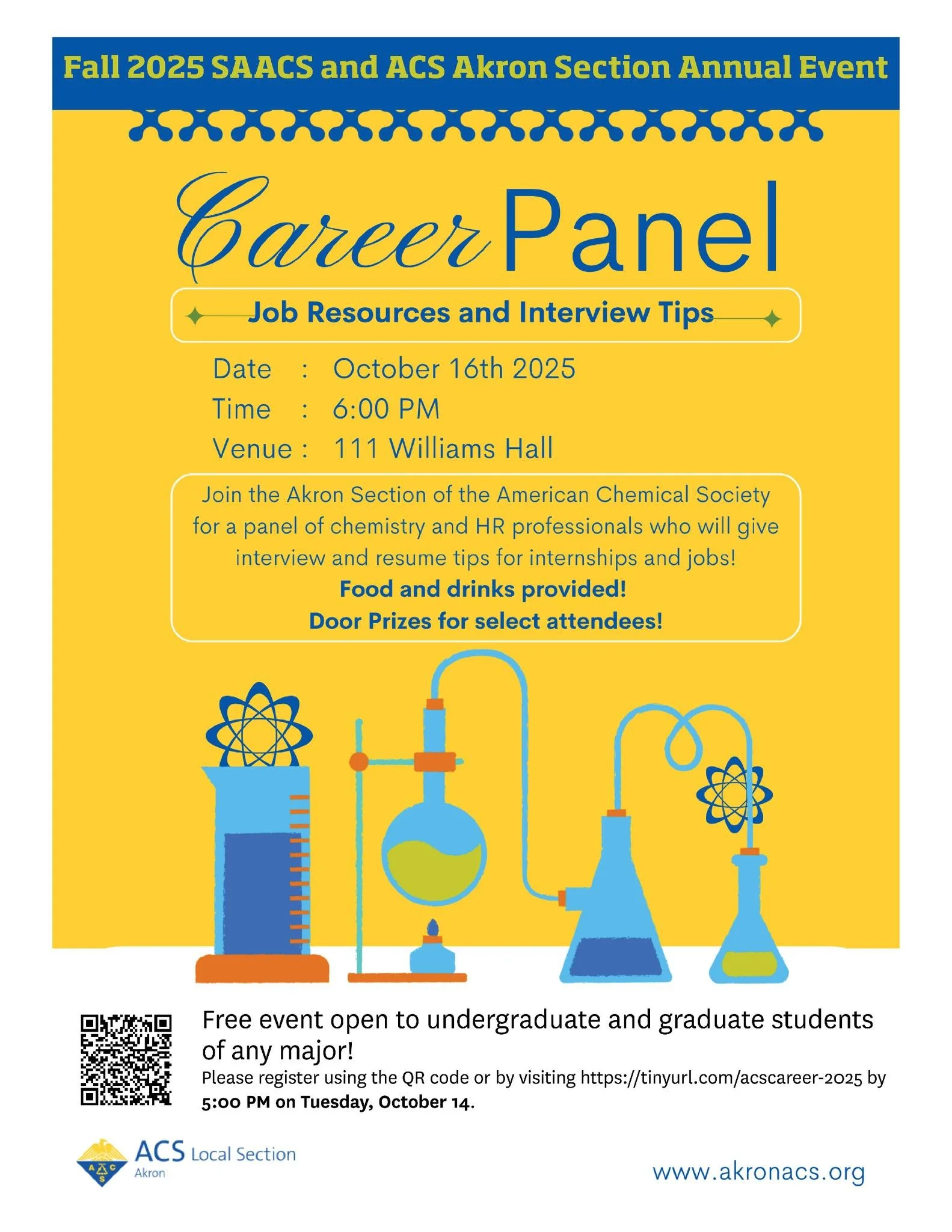 Join us for the ACS + SAACS Career Event on Thursday, Oct. 16 at 6:00 PM in 111 Williams Hall!